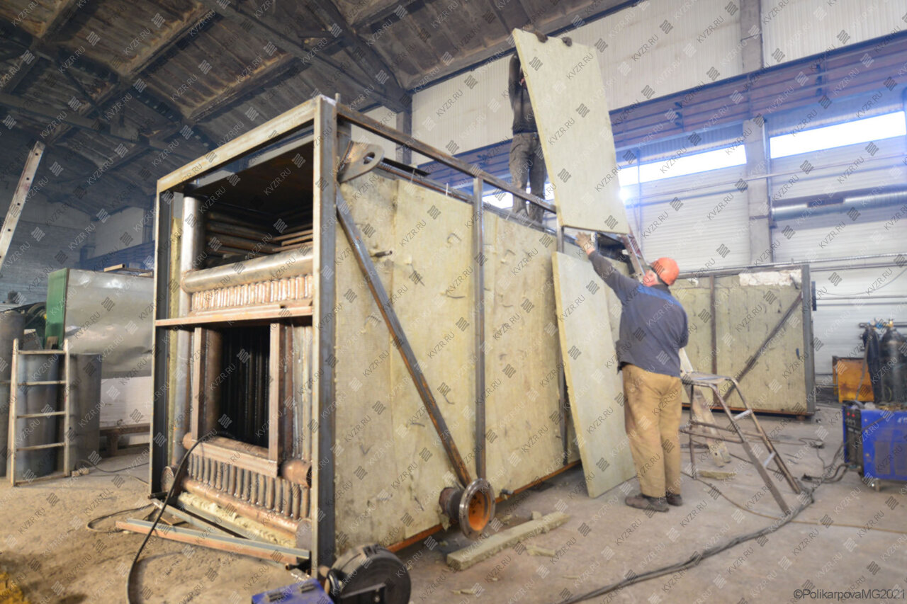 Все водогрейные котлы 4000 кВт нашего производства - стальные, горизонтальные, водотрубные, прямоточные и компактные. Трубная часть котельного блока выполняется из труб различных диаметров, материал труб сталь 10 и 20. Блок снаружи обваривается стальной охлаждаемой полосой, поэтому в наших котлах исключена возможность задымления котельного зала. Снаружи на каркас из профильной трубы и швеллера крепится утеплитель и декоративная обшивка из полимерного листа. В обшивке предусмотрены лючки для очистки поверхностей нагрева.